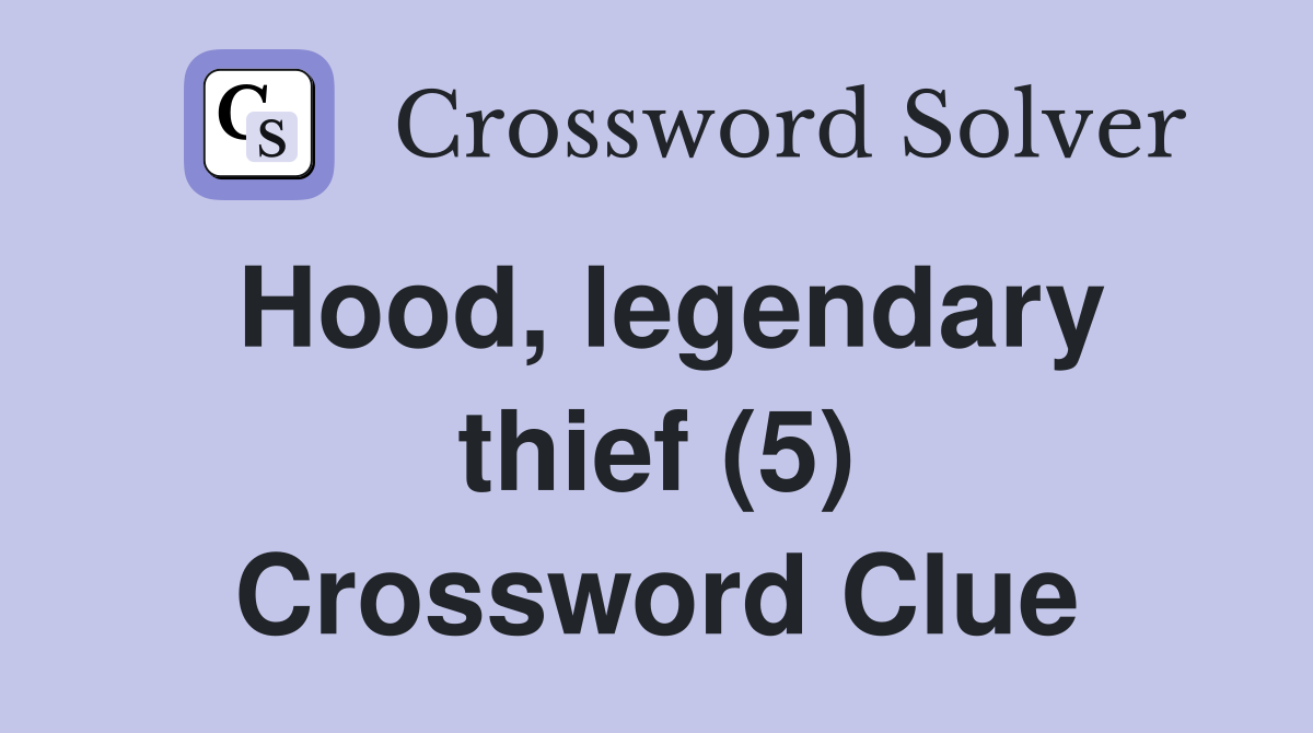 Hood legendary thief (5) Crossword Clue Answers Crossword Solver
