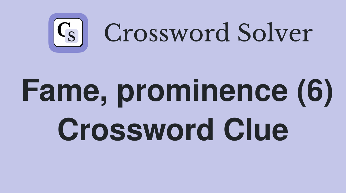 Fame prominence (6) Crossword Clue Answers Crossword Solver