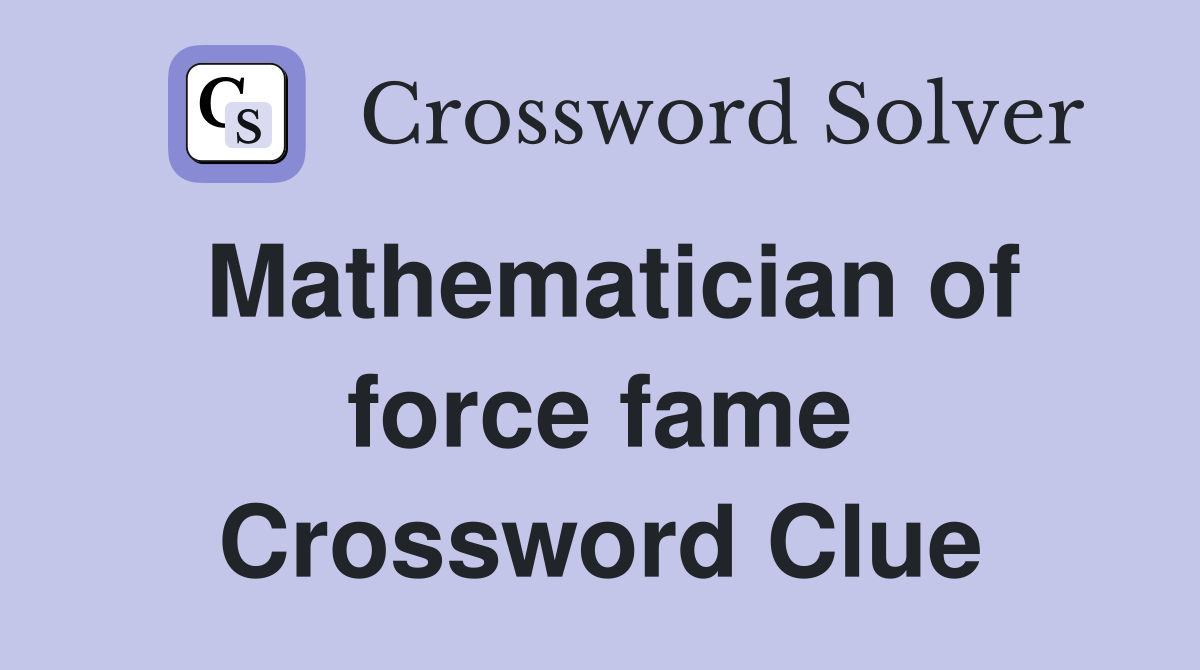 Mathematician of force fame Crossword Clue Answers Crossword Solver