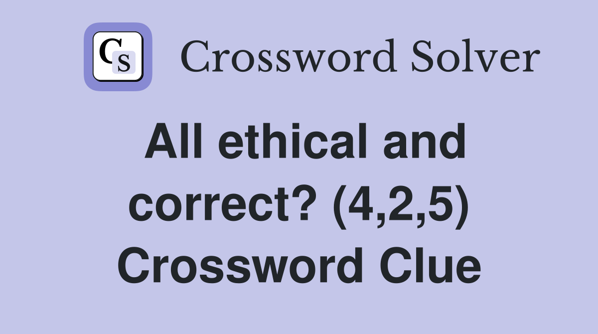 All ethical and correct? (4 2 5) Crossword Clue Answers Crossword