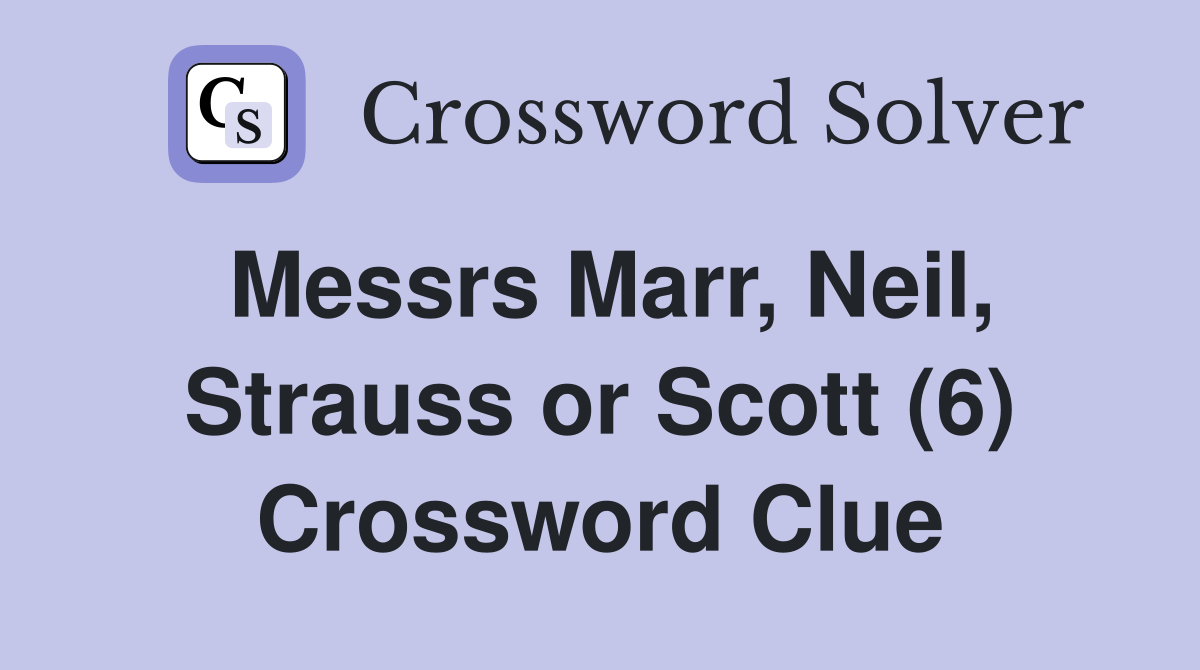 Messrs Marr Neil Strauss or Scott (6) Crossword Clue Answers