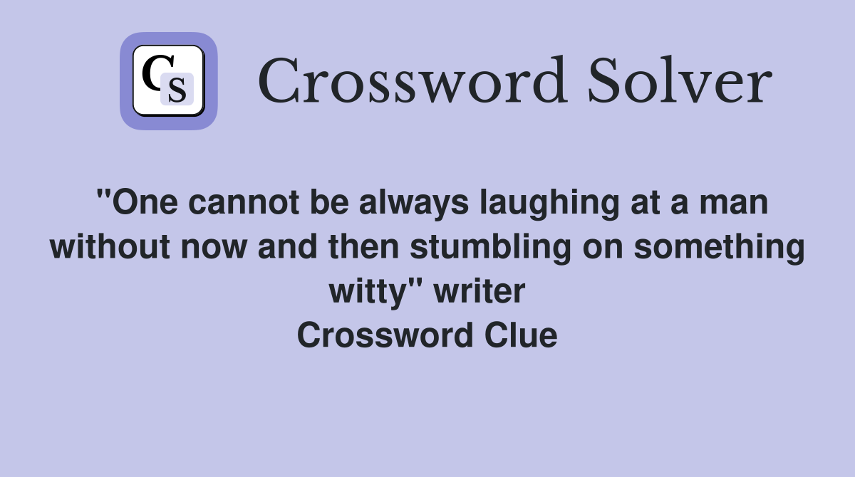 quot One cannot be always laughing at a man without now and then stumbling