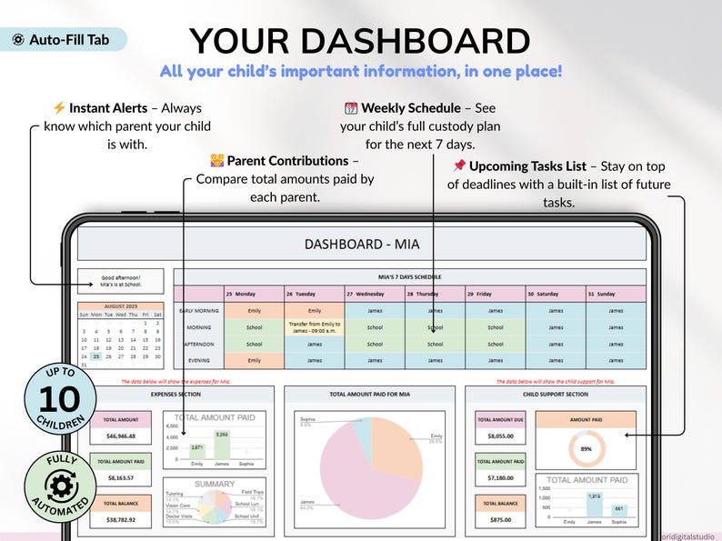 Co parenting Digital Planner Google Sheets Excel Custody Schedule Child