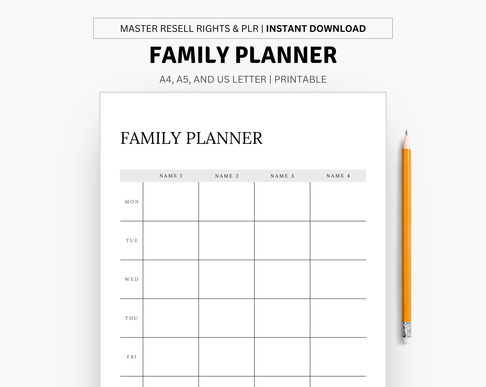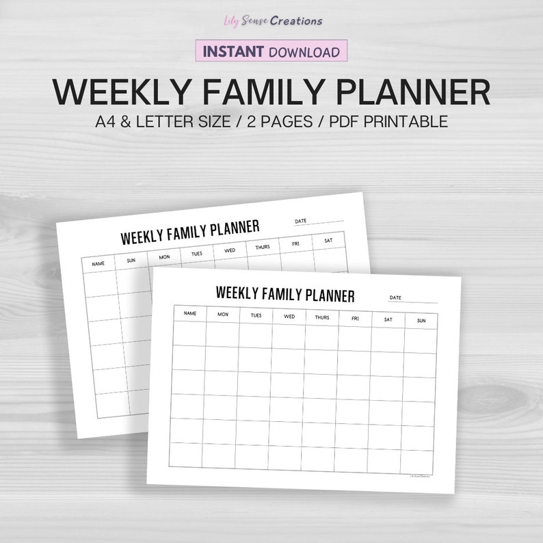 Weekly Family Planner // Printable Weekly Planner A4 Size A5 Size