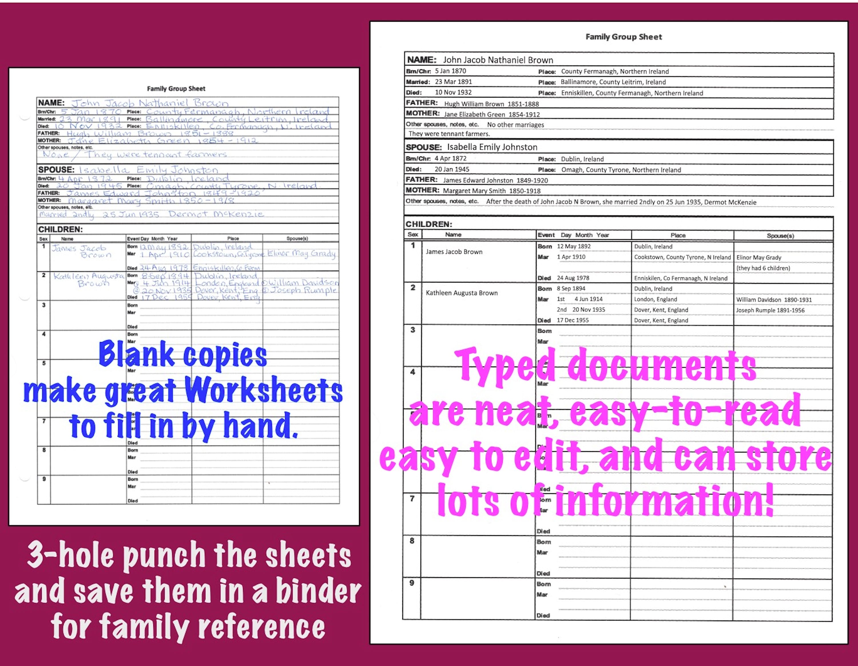 Printable Family Group Sheets