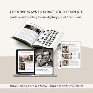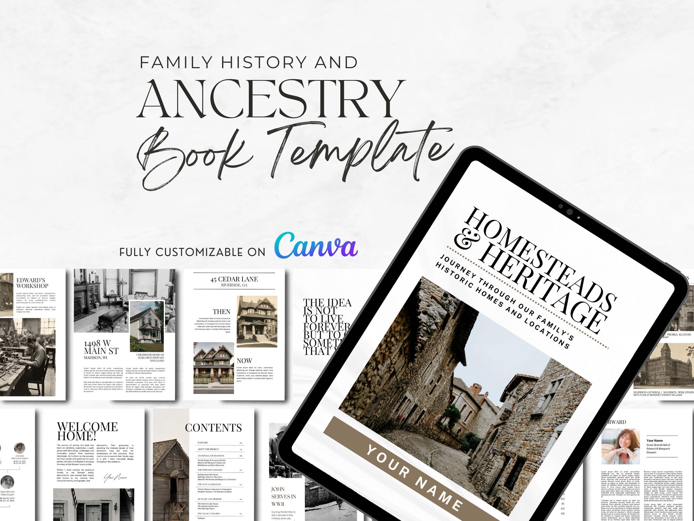 Ancestor Photo free Family History Book Template / Canva Editable Book