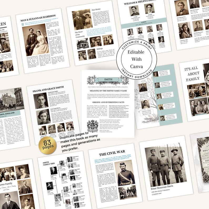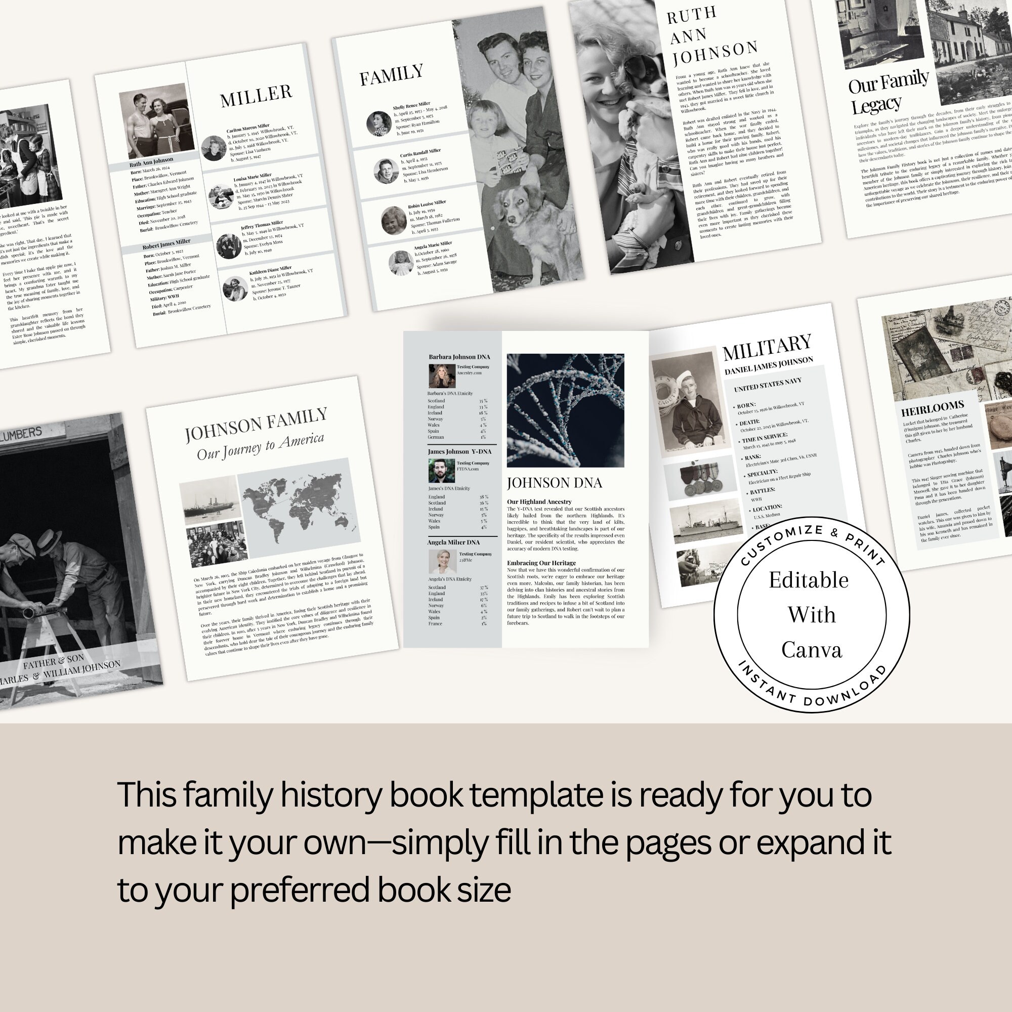 DELUXE Family History Book Template / Customize With Canva / Ancestry