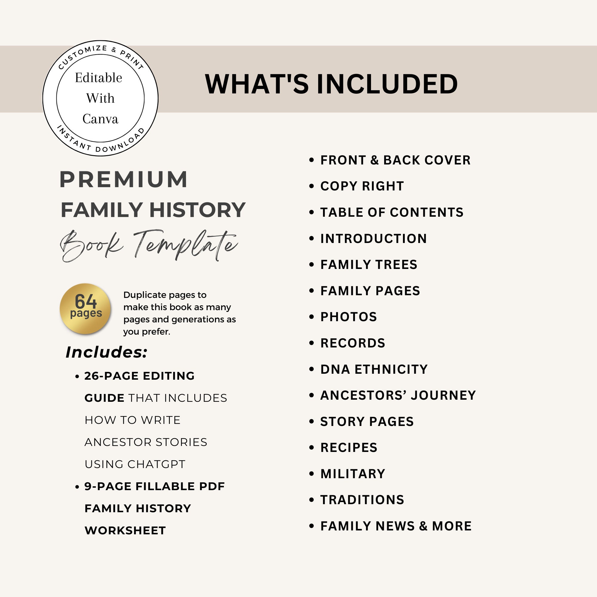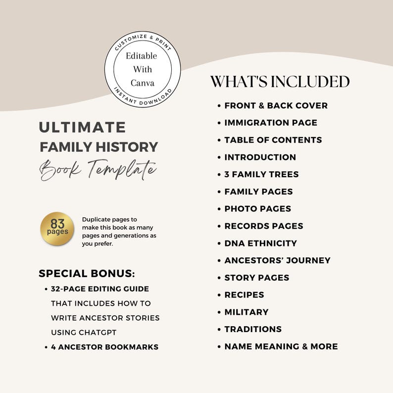PREMIUM Family History Book / Canva Template / Instant Download / Bonus