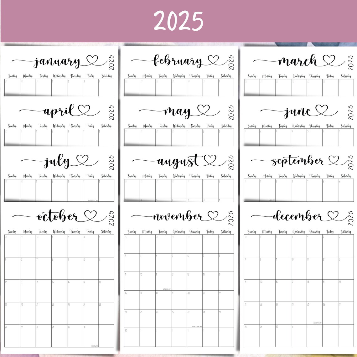 2025 Printable Calendar Template Family Organizer Monthly Planner