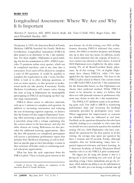 Longitudinal Assessment American Board of Family Medicine