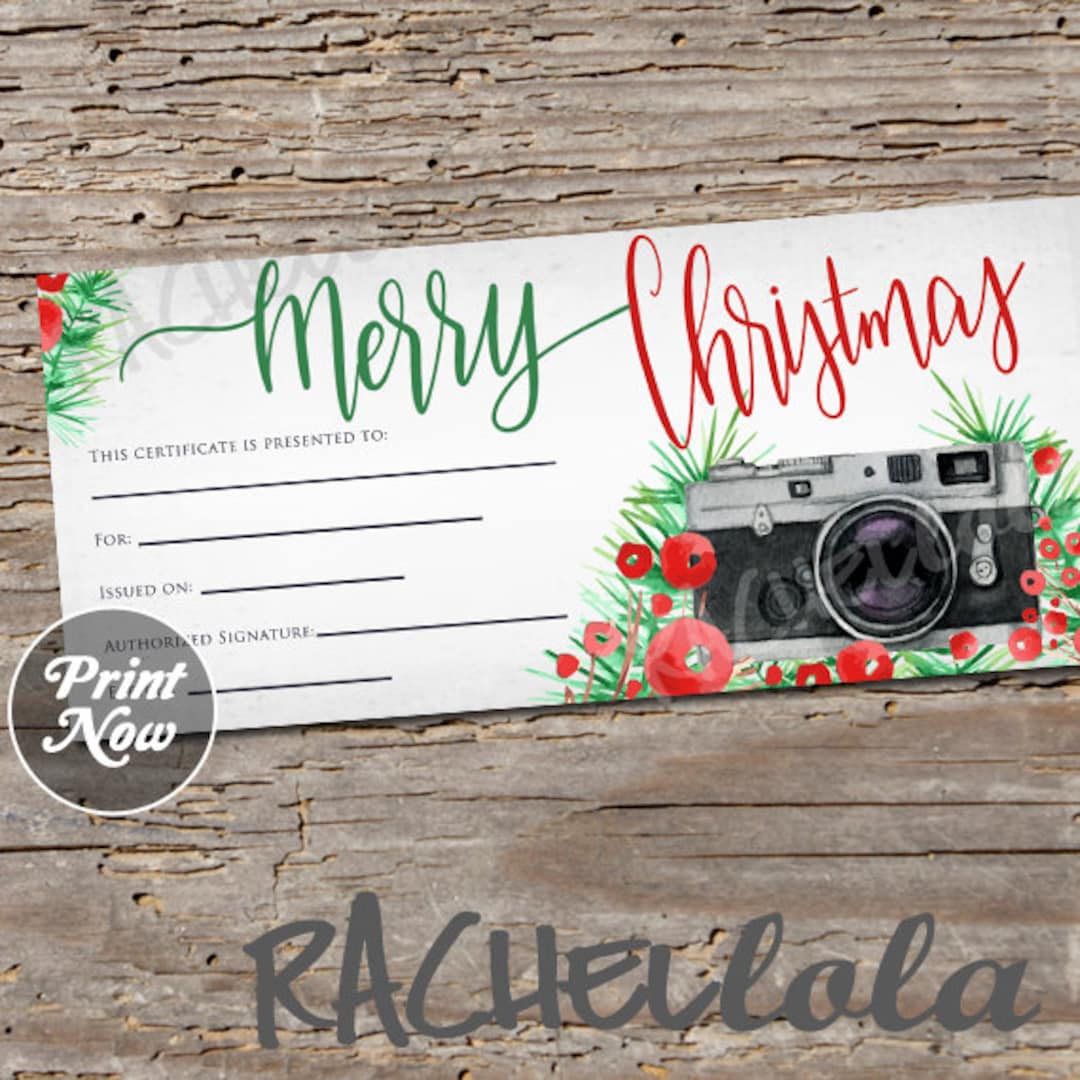 Christmas Gift Certificate Gift Certificate Printable Photo Session