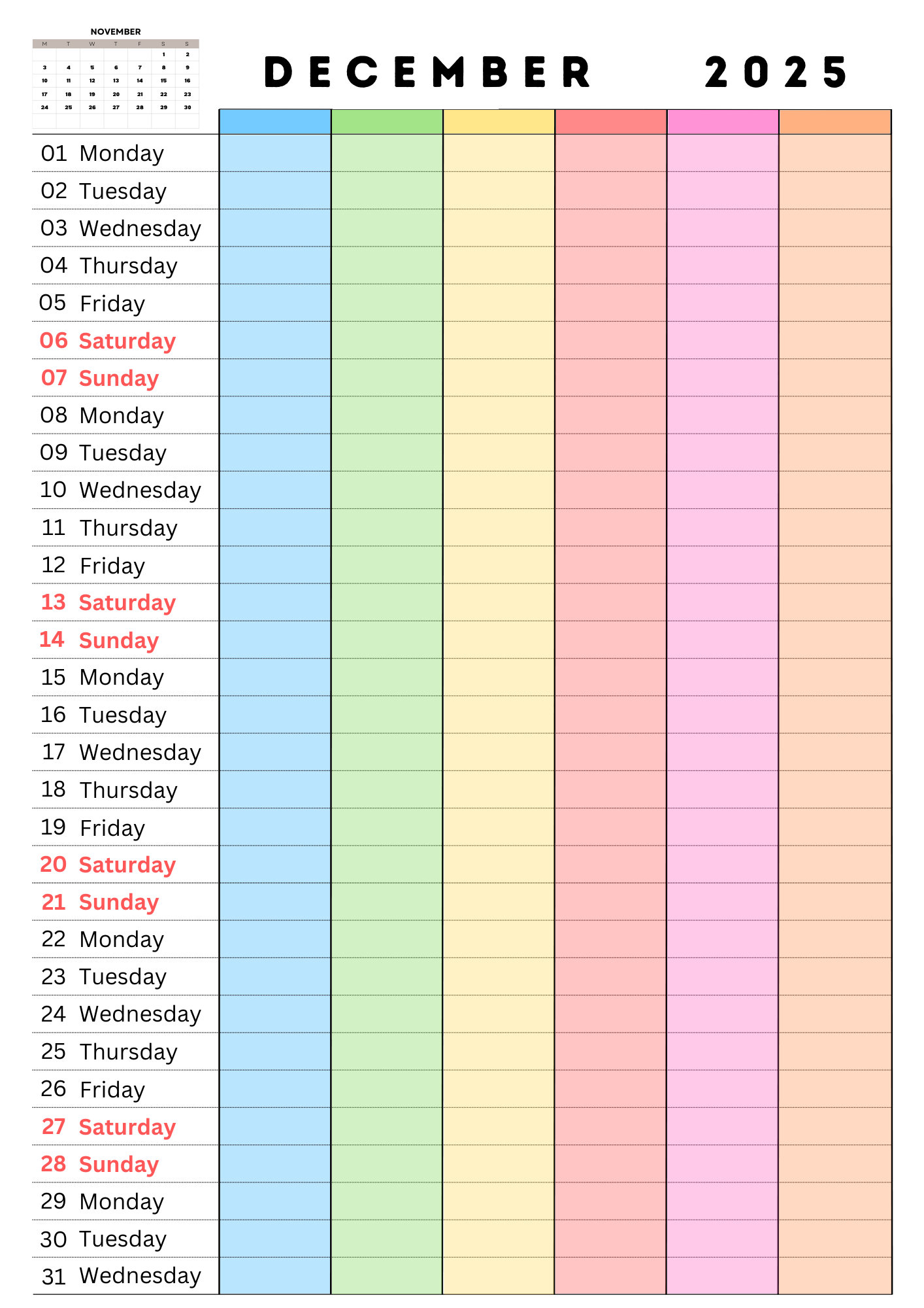 Family calendar 2025 5 columns FLORAL family planner 2025 and Oct Dec