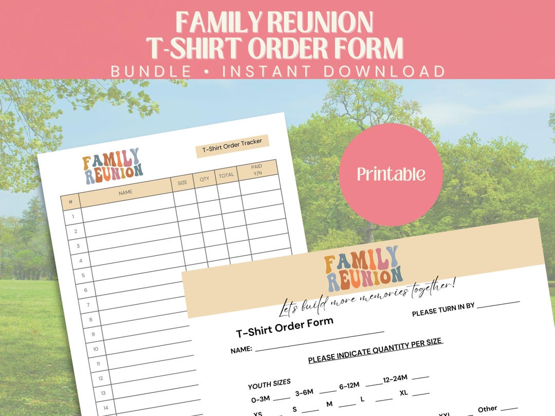 Family Reunion T Shirt Order Form Bundle Printable T shirt Order Forms