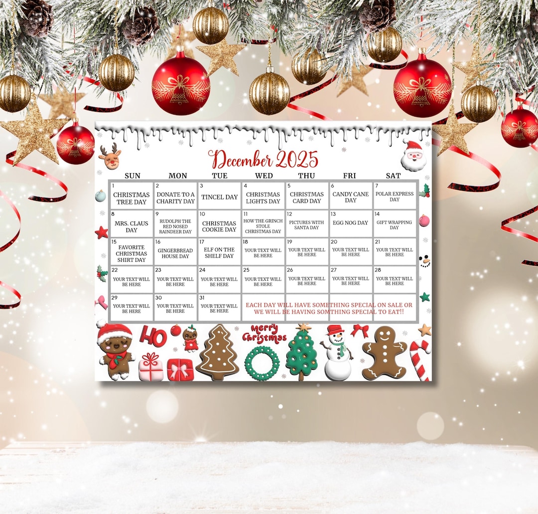 Editable Christmas December 2025 Family Calendar Printable Christmas