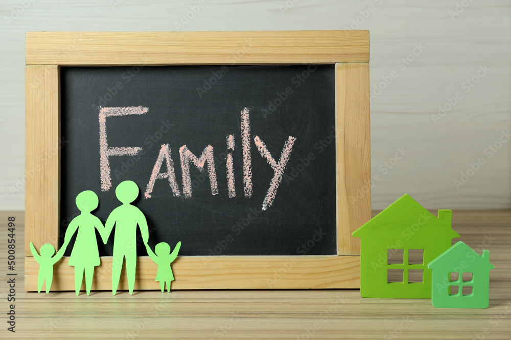 Family Word and Figure for Adopt Child Concept on White Background Top