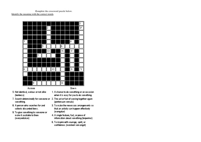 Unit 3 Family Ties Identify The Meaning by Complete The Crossword