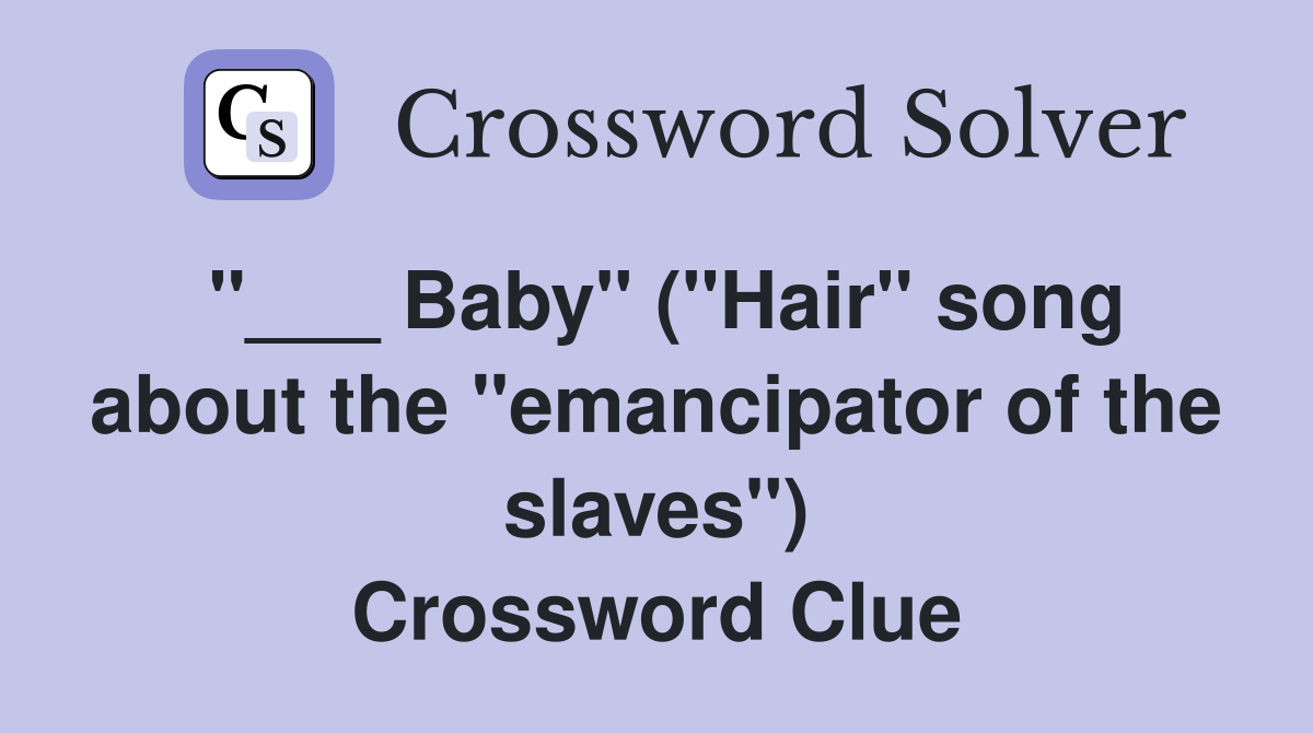 Baby quot ( quot Hair quot song about the quot emancipator of the slaves quot ) Crossword