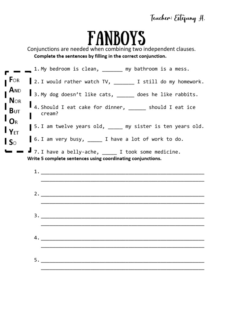 Fanboys Conjunctions Worksheet
