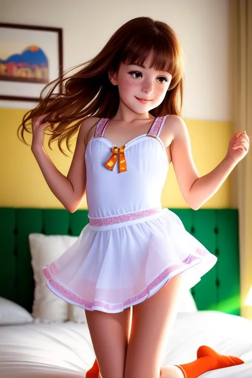 A beautiful tiny alina gileva jumping on the bed we OpenArt