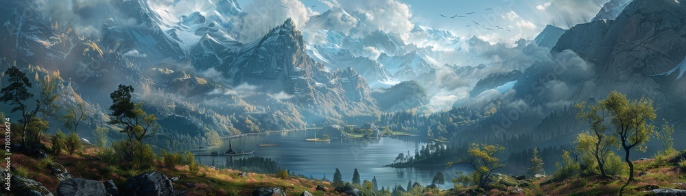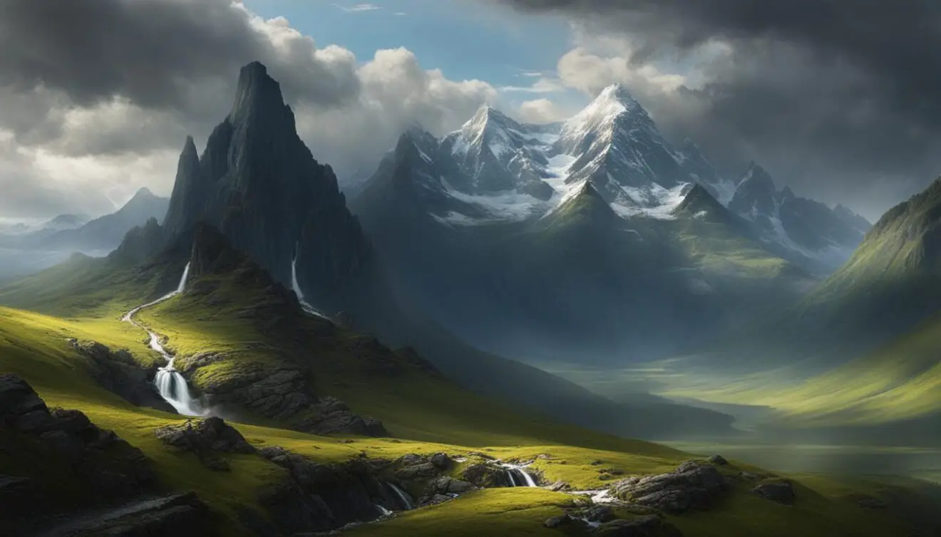 Fantasy Mountain Landscape Background Hyper Realistic Intricate Detail
