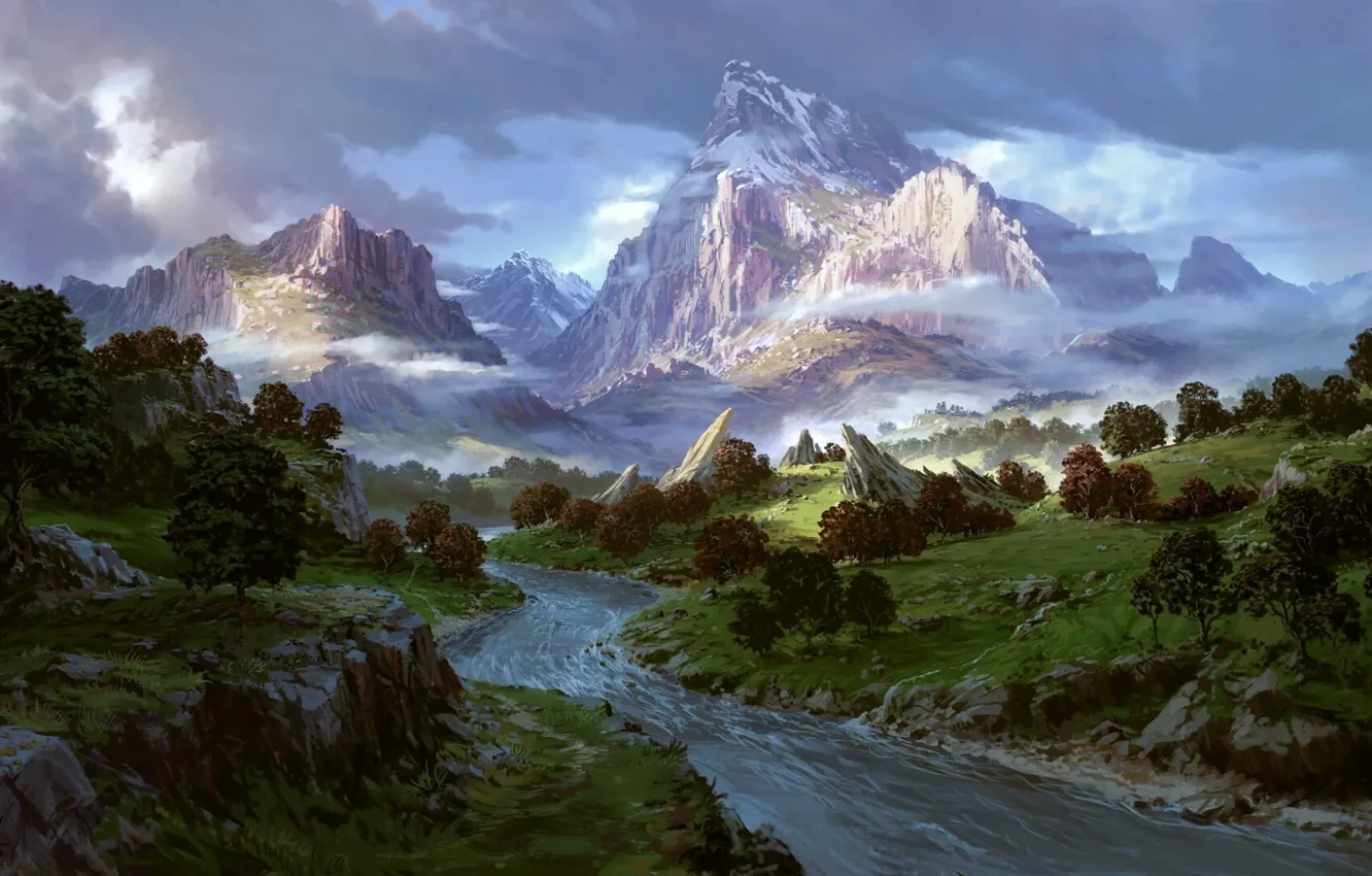 Wallpaper fantasy river landscape mountains snow for mobile and