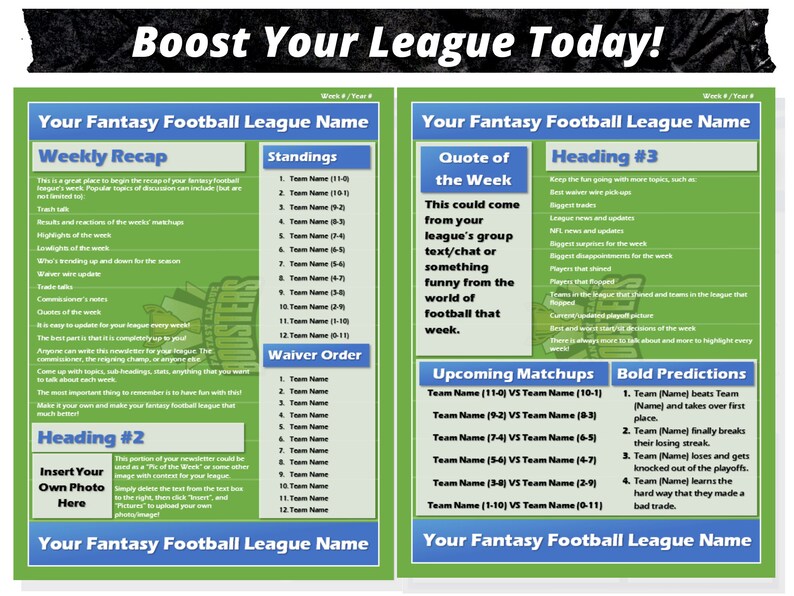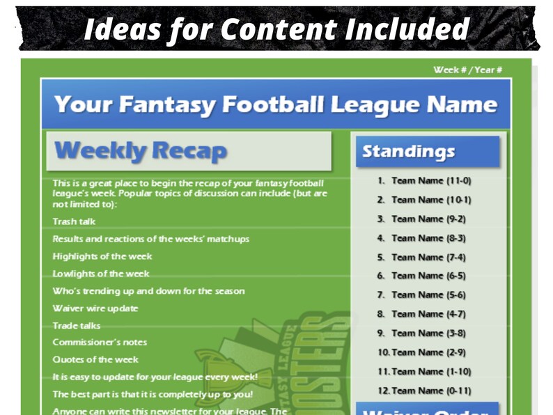Fantasy Football Newsletter Instant Download Microsoft Word 2