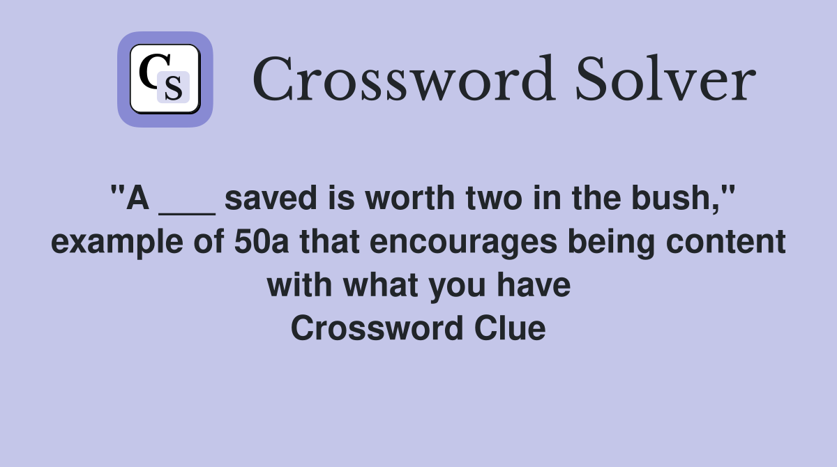 quot A saved is worth two in the bush quot example of 50a that encourages