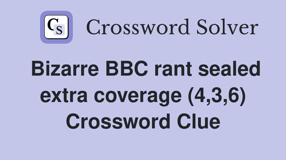 Bizarre BBC rant sealed extra coverage (4 3 6) Crossword Clue Answers
