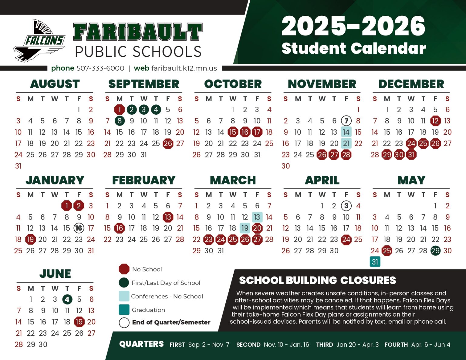 2025 2026 School Calendar Faribault Lutheran School