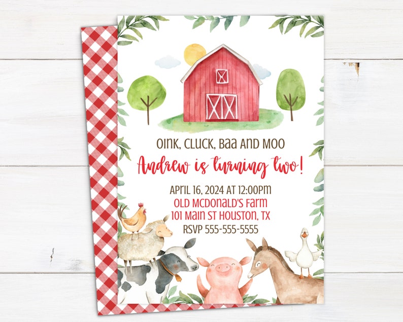 Farm Birthday Party Invitation Template With Photo Farm Etsy