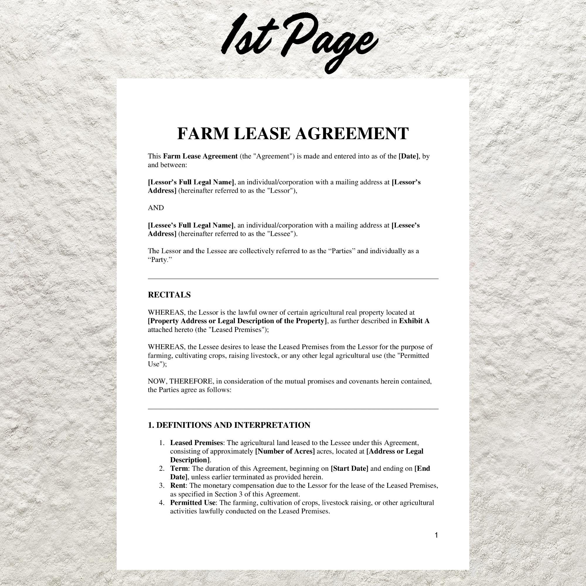 Fillable Farm Lease Contract Template Printable PDF Editable in Canva