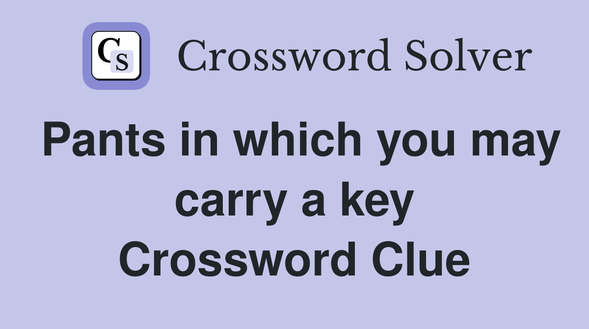 Pants in which you may carry a key Crossword Clue Answers Crossword