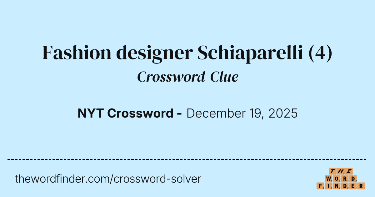 Fashion designer Schiaparelli Crossword Clue