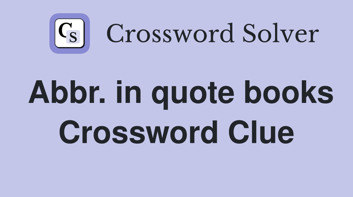 Abbr in quote books Crossword Clue Answers Crossword Solver