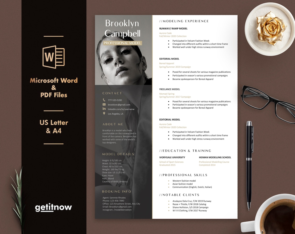 Professional Model Resume Template Pdf Male/ Female Fashion Model