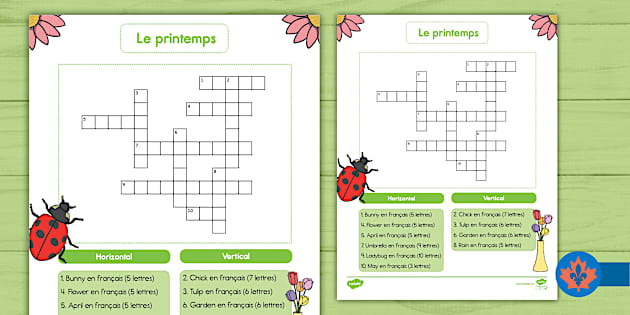 LEARN FRENCH Crossword Puzzle Game with Flowers Educational Page for