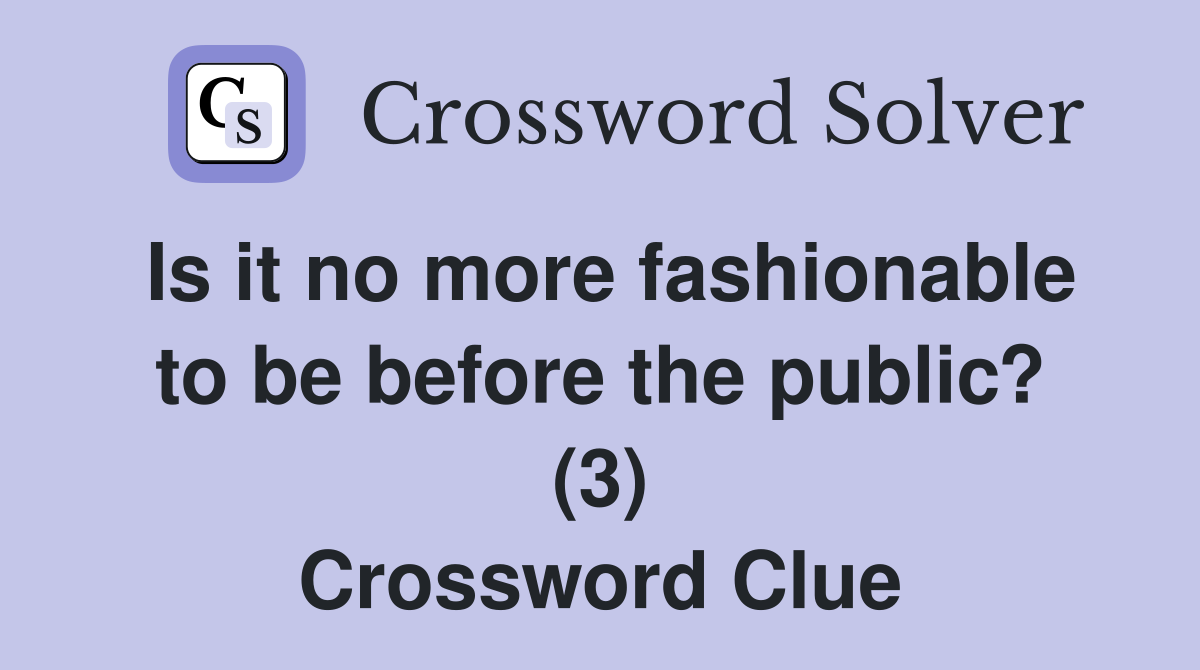 Is it no more fashionable to be before the public? (3) Crossword Clue