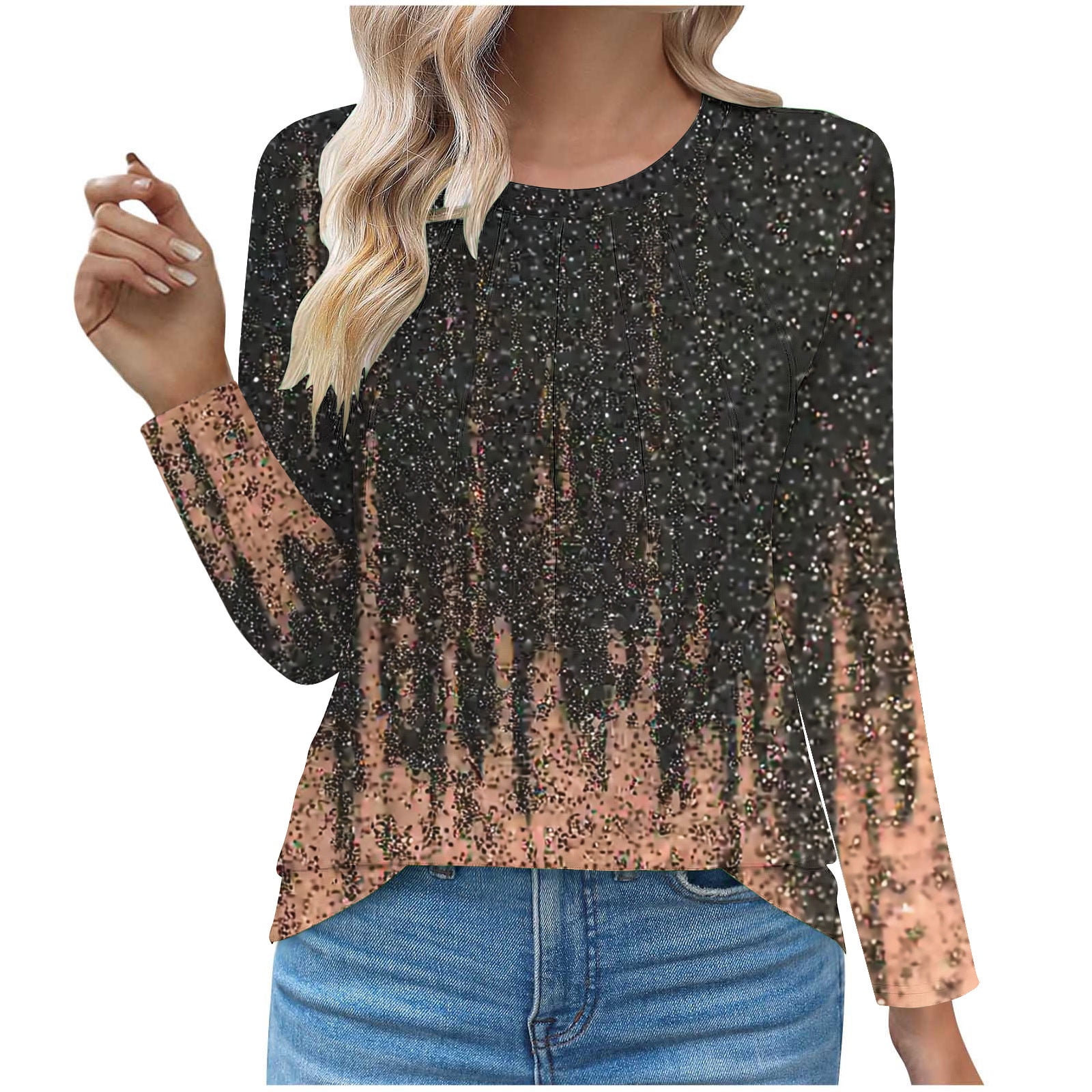 SnZhen Women #39 s Long Sleeve Tops Fashionable Printed Round Neck Casual