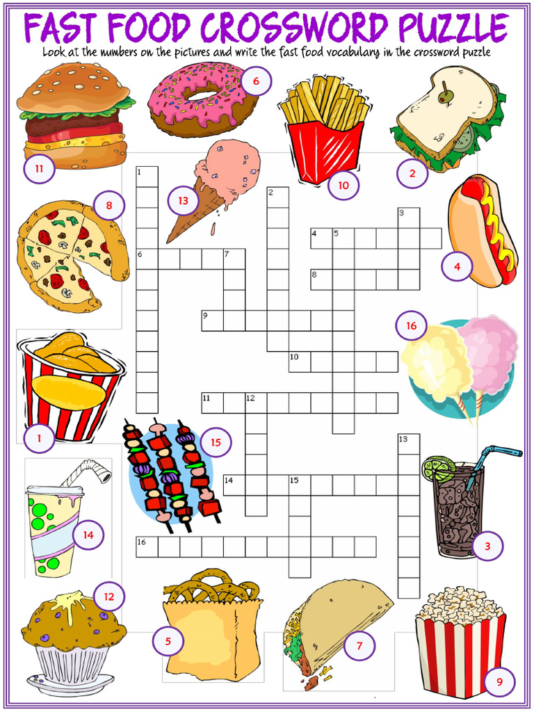 Fast Food Esl Vocabulary Crossword Puzzle Worksheet For Kids