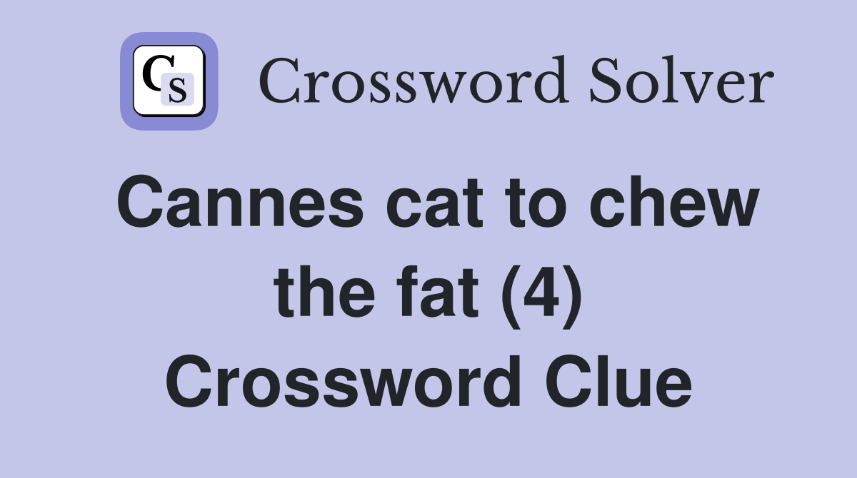 Cannes cat to chew the fat (4) Crossword Clue Answers Crossword Solver