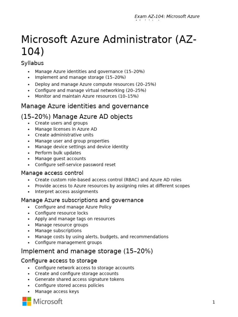 AZ 104 Syllabus PDF Microsoft Azure Computer Network
