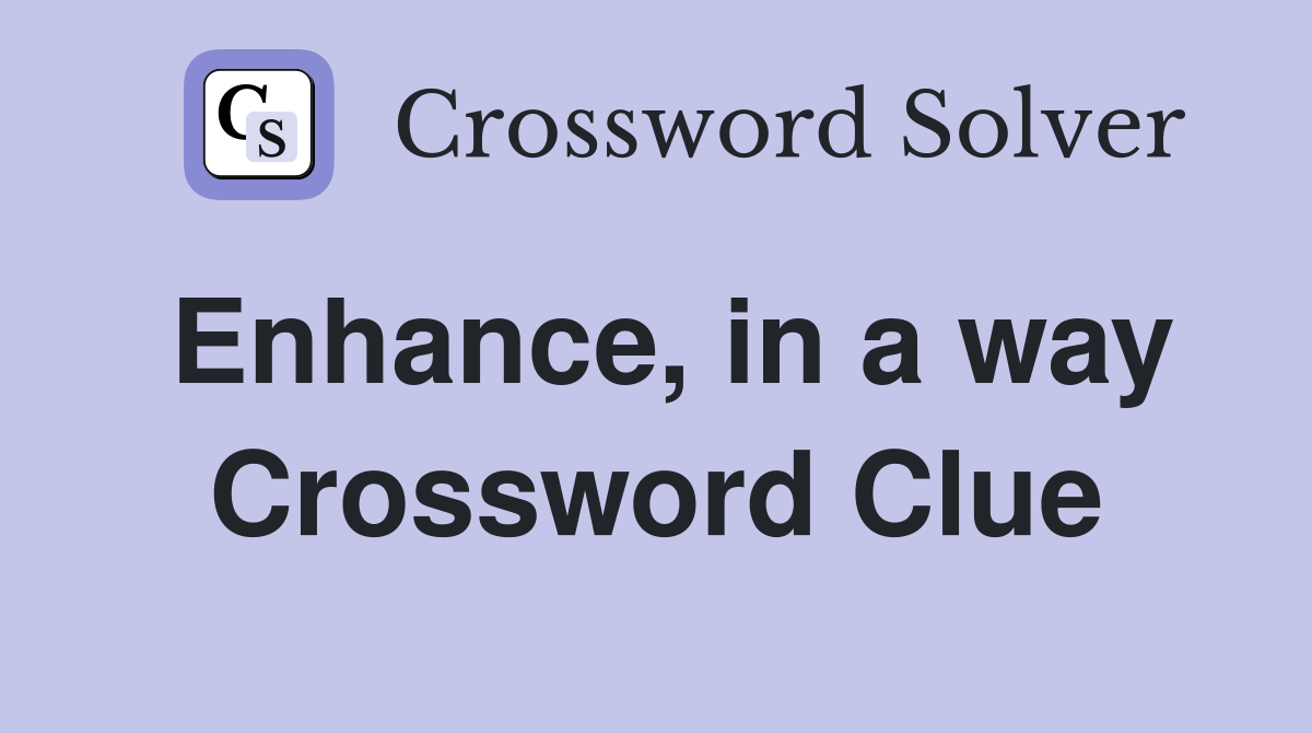 Enhance in a way Crossword Clue Answers Crossword Solver