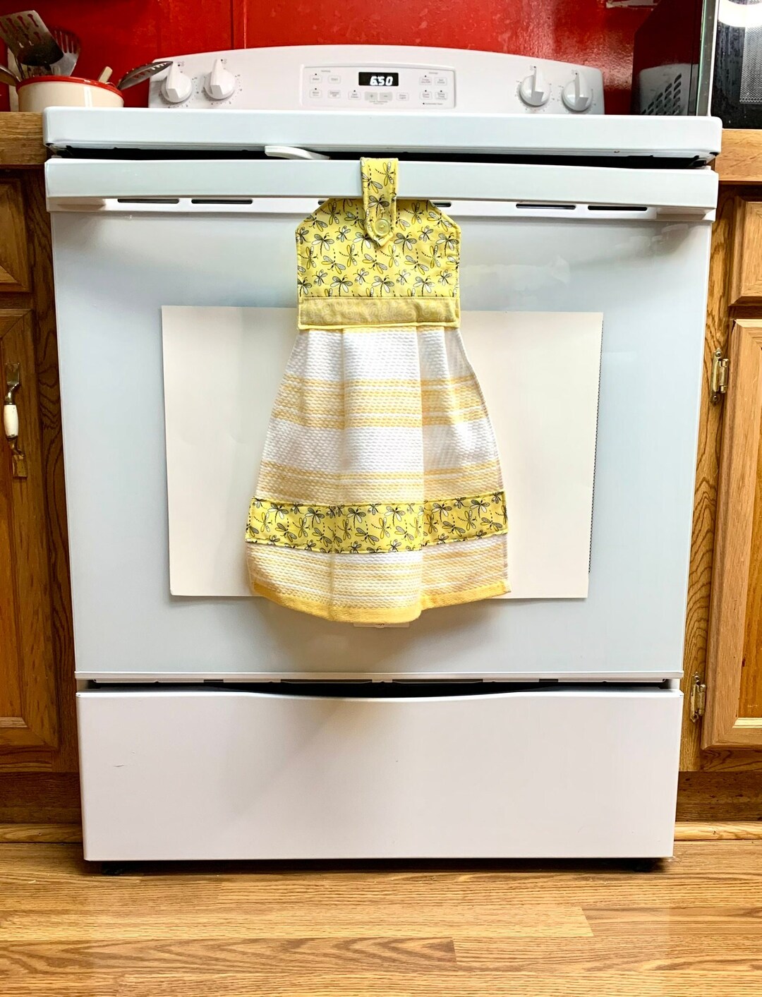 Dragonflies on Hanging Dishtowel Button Fabric Topper Fastens