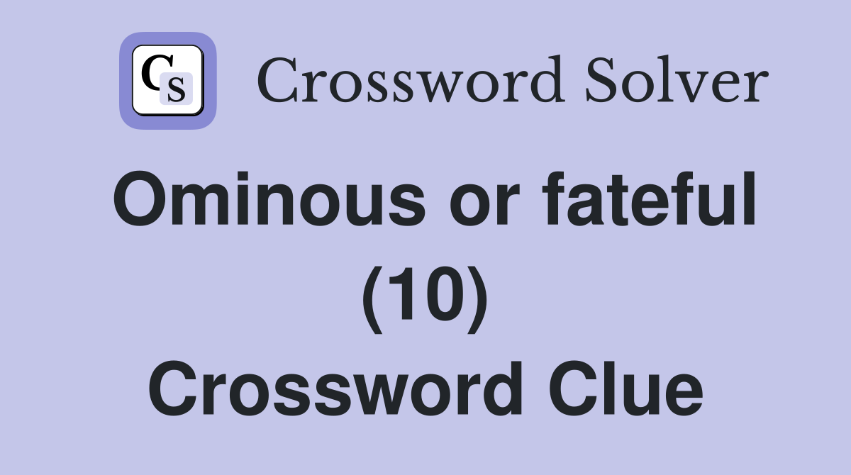 Ominous or fateful (10) Crossword Clue Answers Crossword Solver