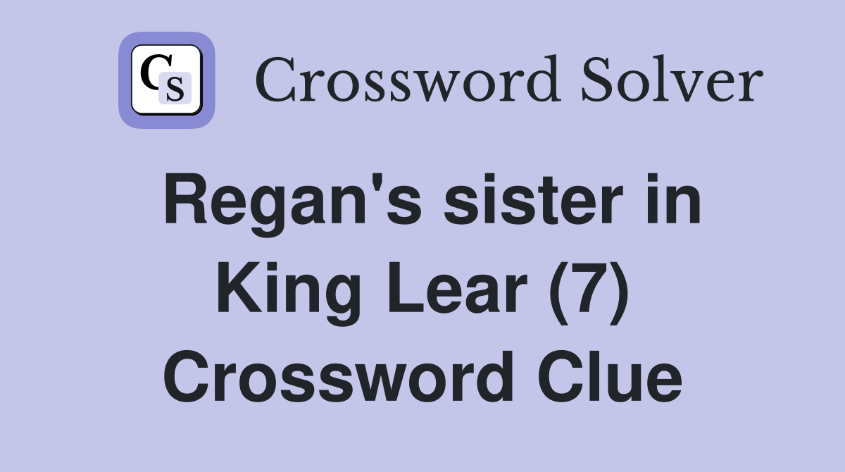 Regan s sister in King Lear (7) Crossword Clue Answers Crossword Solver