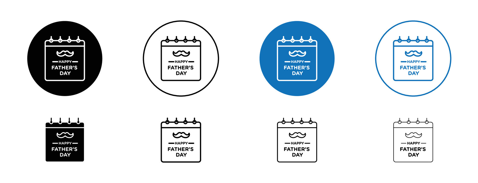 Fathers day calendar icon Vector symbol or sign set collection in black