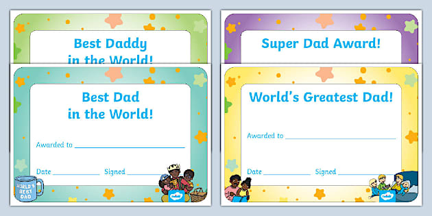 Father #39 s Day Printable Certificate Awards FUN Fathers Day Keepsake