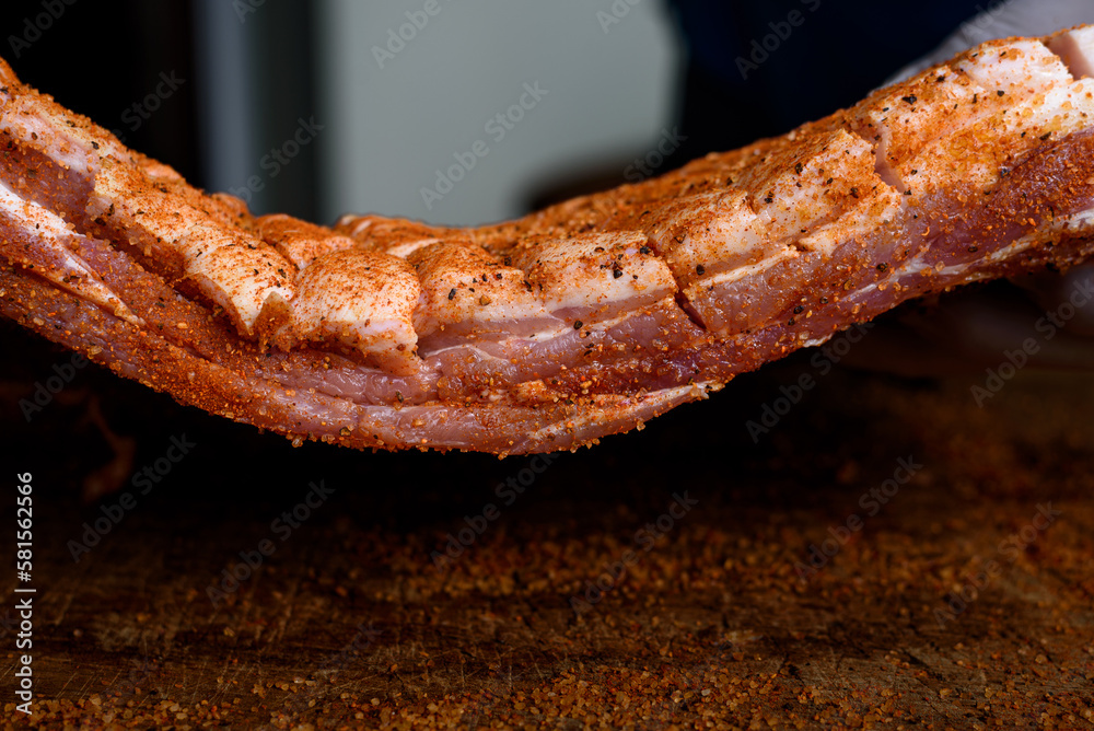 Foto de Meat preparation for BBQ Pork belly is a boneless and fatty cut