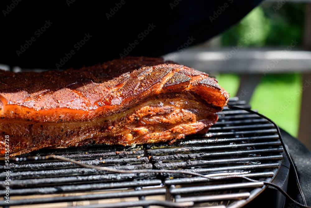Foto de vSMOKER BBQ FILLED WITH MEAT Pork belly or Belly Pork is a