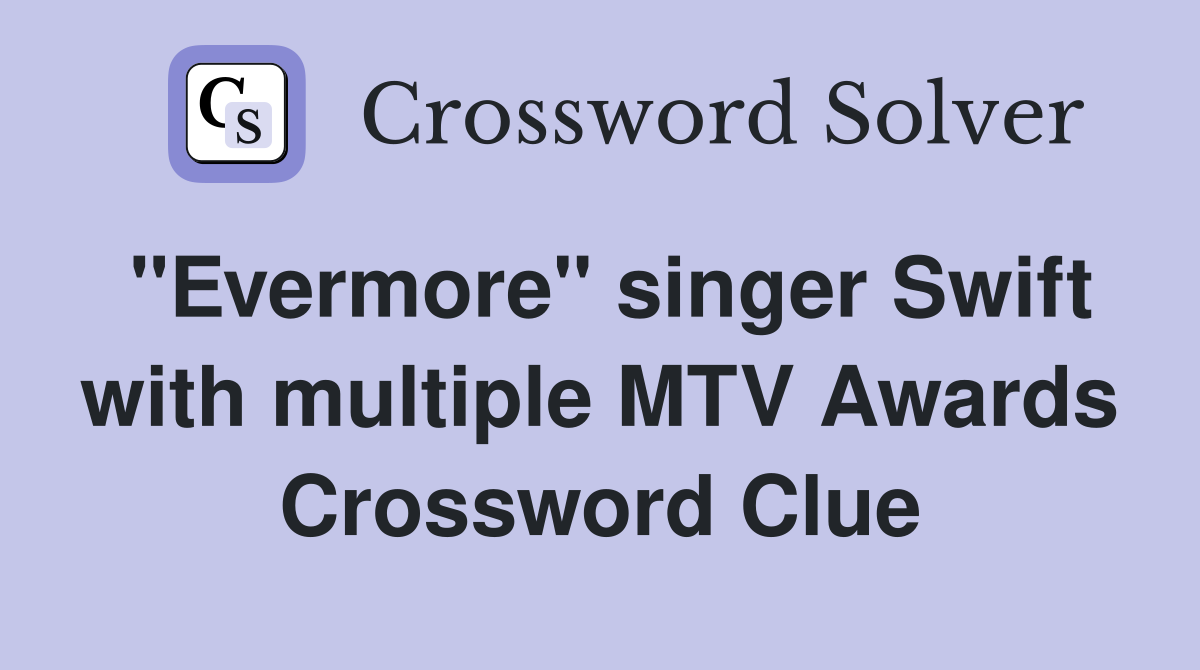 quot Evermore quot singer Swift with multiple MTV Awards Crossword Clue